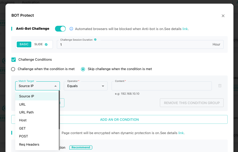 Some bots can only be stopped by forcing them to prove they are not machines. SafeLine includes an Anti‑Bot Challenge feature: when it detects suspicious traffic, it can present a challenge that real browsers handle, but bots fail.