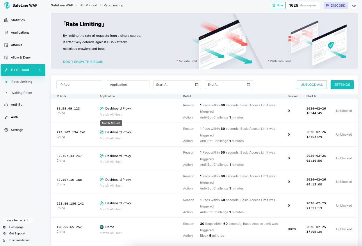SafeLine’s rate limiting lets you: